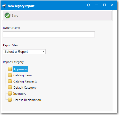 1. On the Report Management > Reporting view, click New Legacy Report. The New Legacy Report dialog box opens.