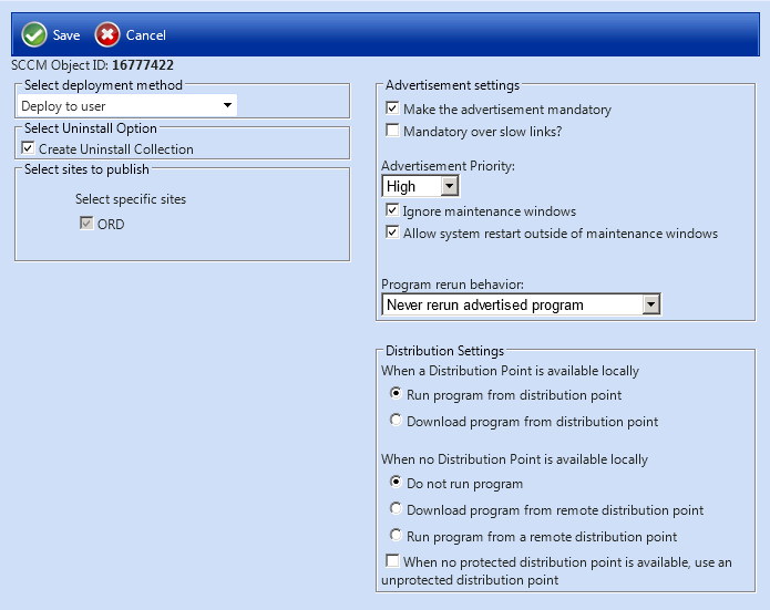 SCCM Deployment Dialog Box