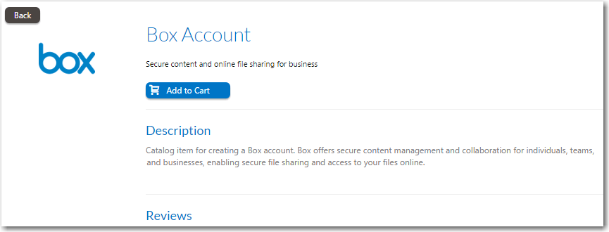 However, if you have connected to a cloud application other than Box, Office 365, or Salesforce (as described in Integrating With Other Cloud Applications), you will need to create a new cloud catalog item. You will also need to create a cloud catalog item if you want to use an ITSM system to request a Box, Office 365, or Salesforce account instead of requesting it directly from the vendor.
