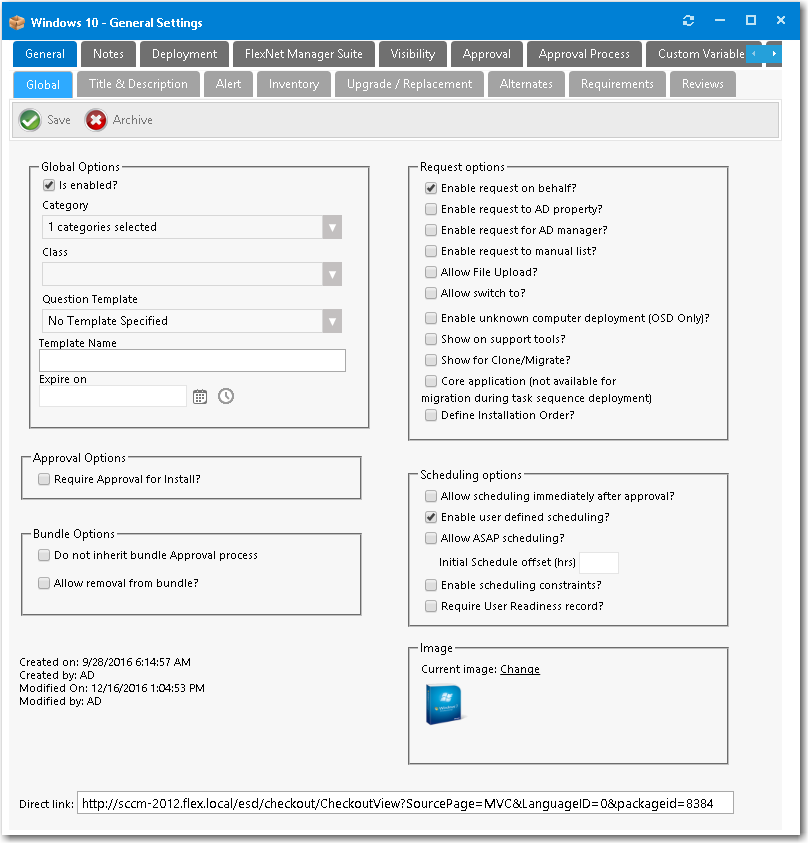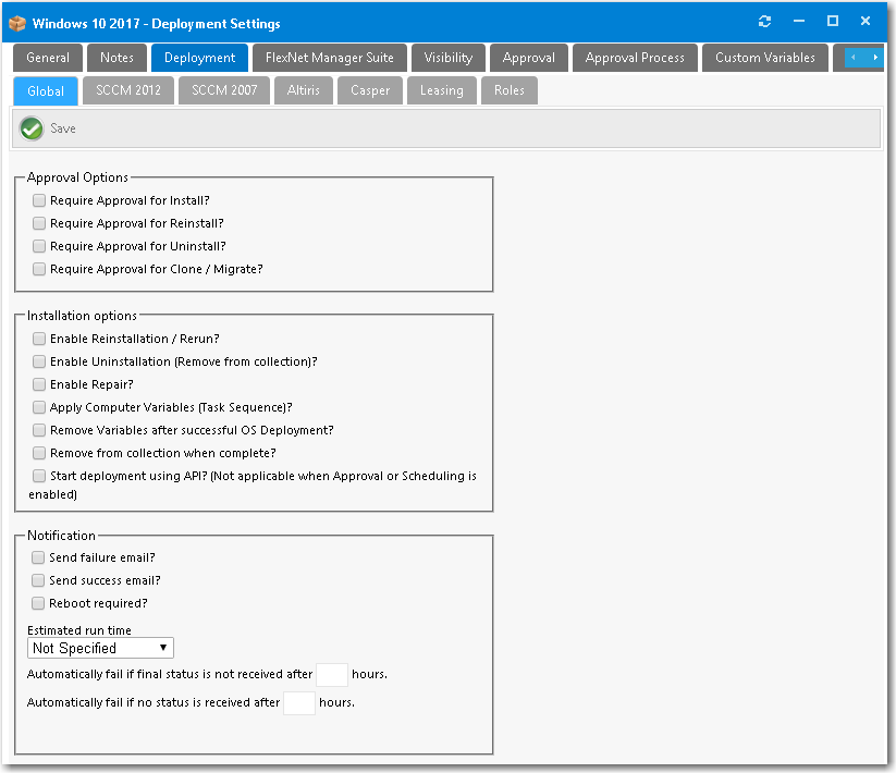 On the Deployment > Global tab, select the following options: -