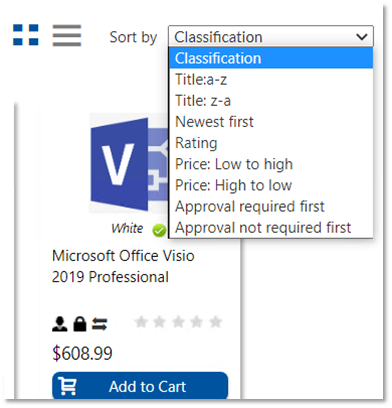 A new entry is added in Sort by list called Classification. This is the default sort by. This is only displayed when the Global Checkbox for Catalog Classification is enabled.